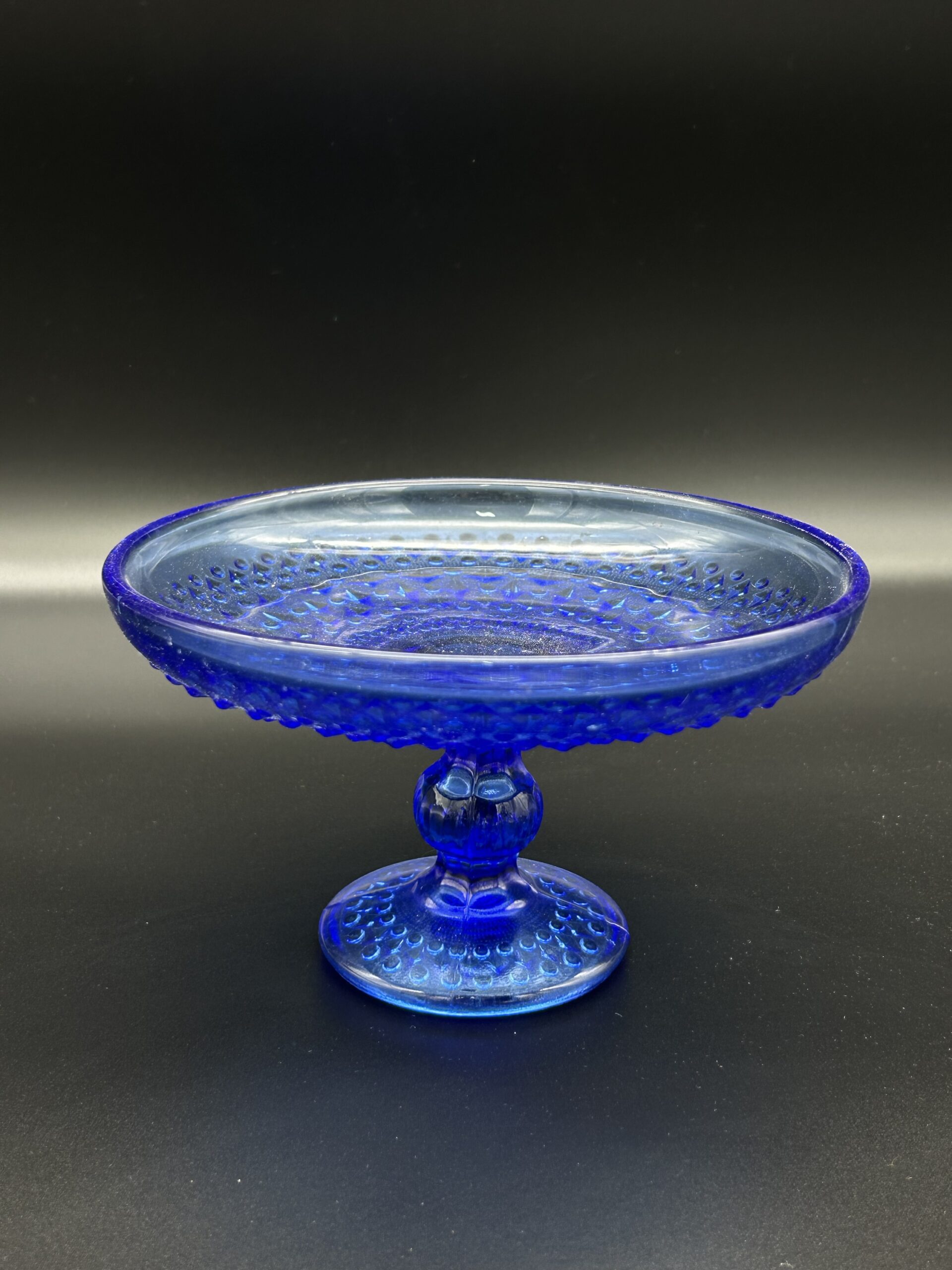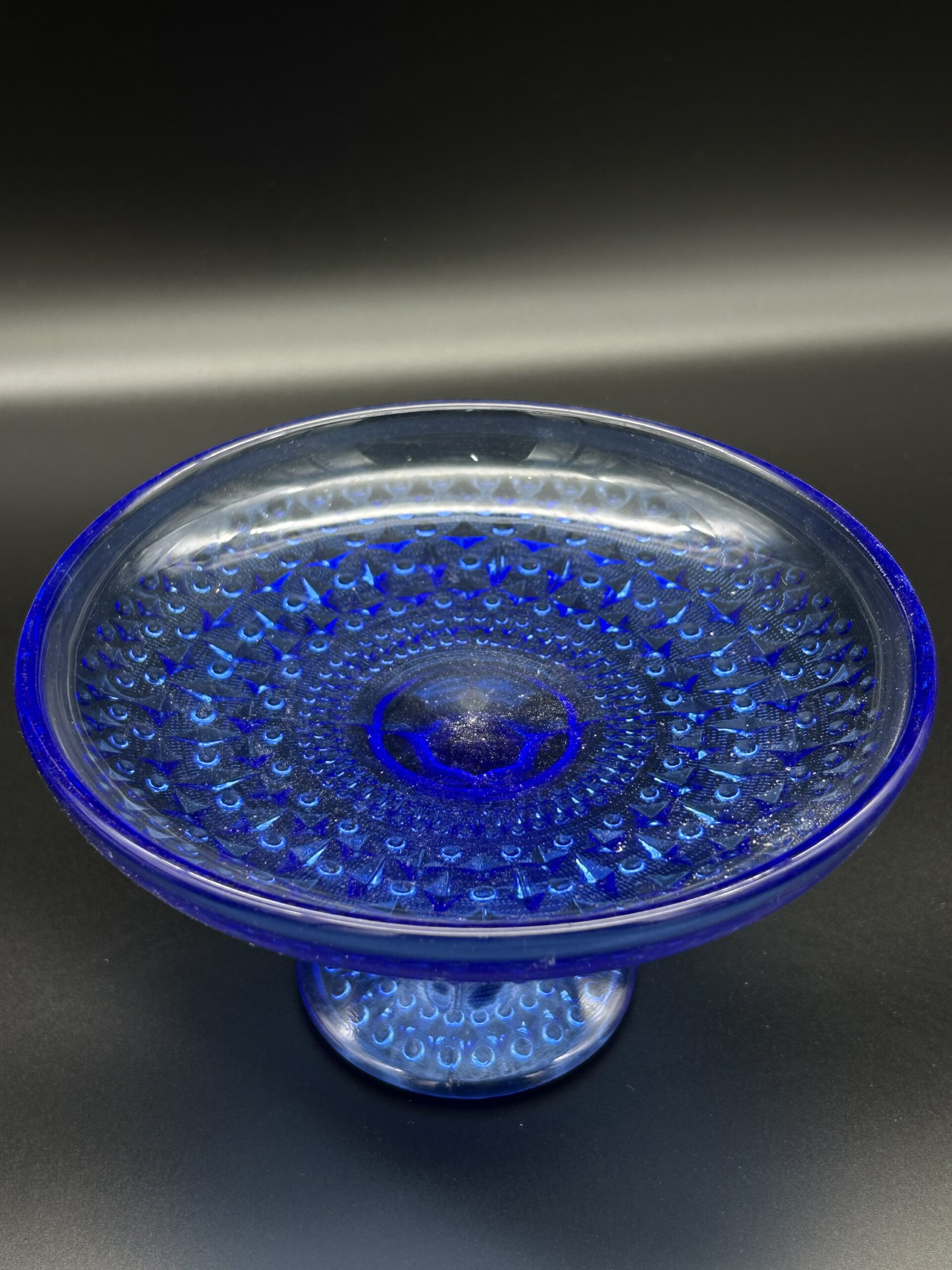 Elegancka patera szklana w intensywnym kobaltowym kolorze.