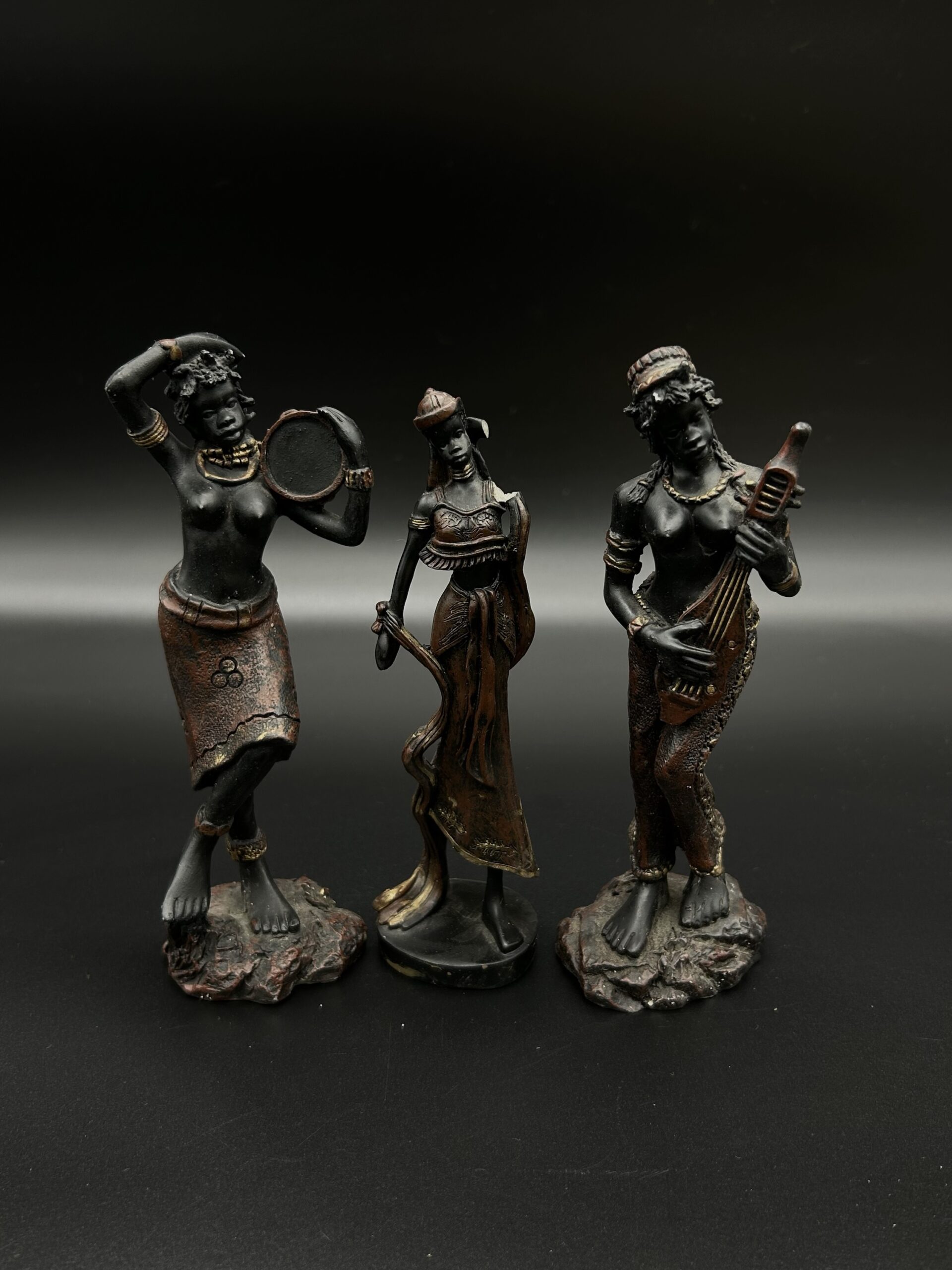 Trzy figurki tancerzy w stylu afrykańskim – taniec, muzyka i rytm.